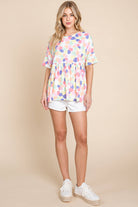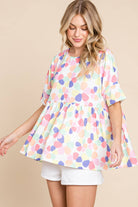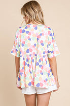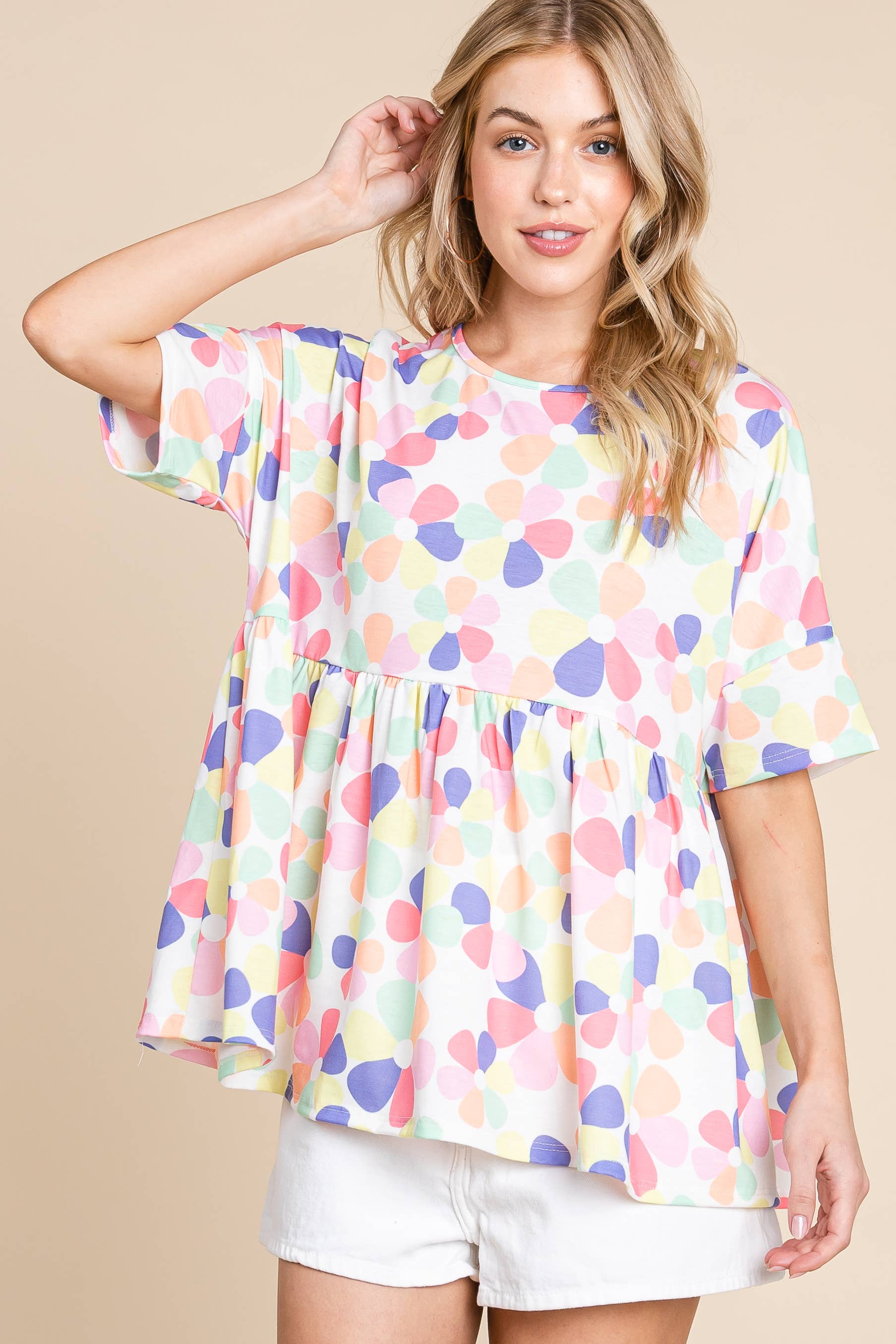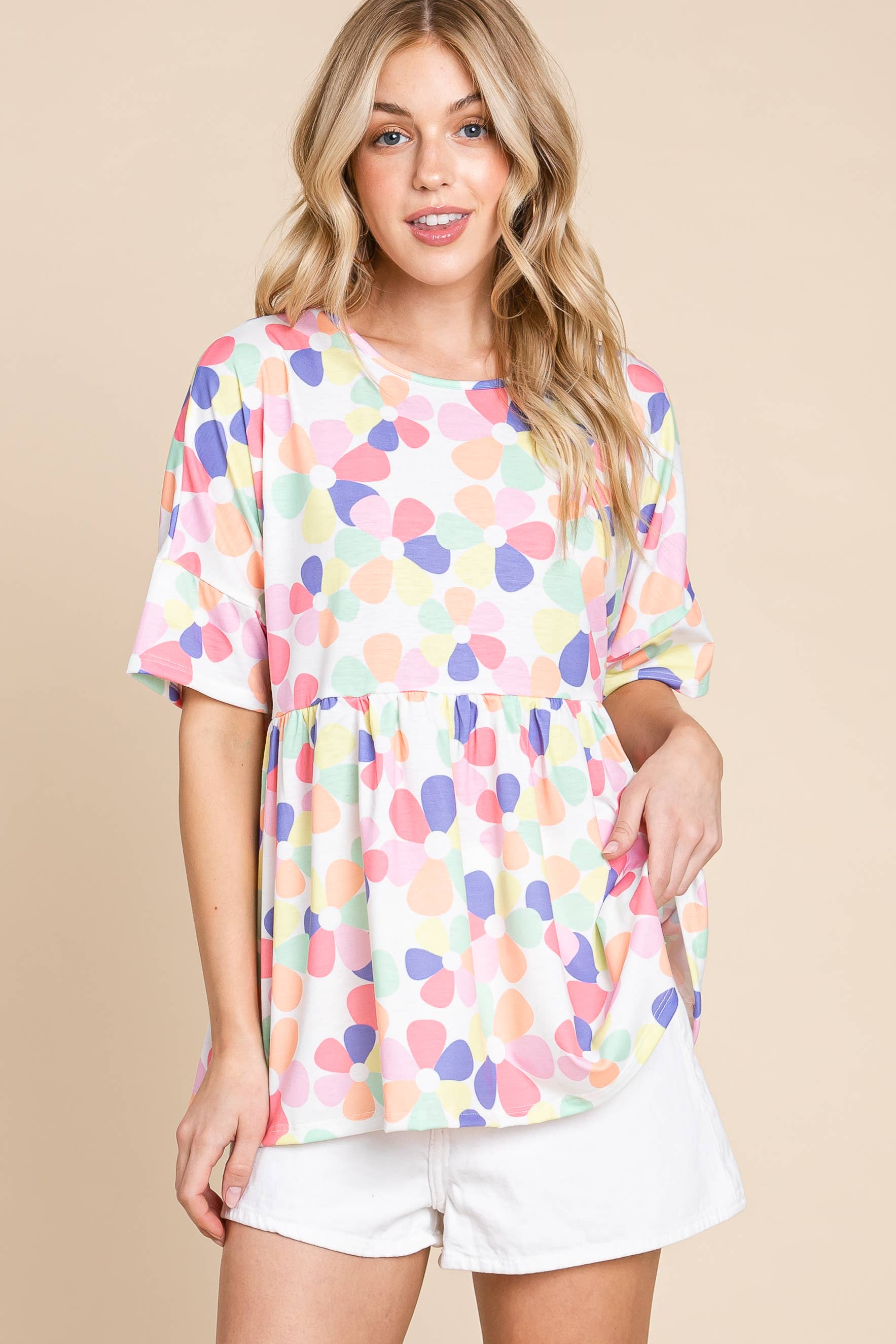 Details Brighten up your spring wardrobe with our Bold Print Peplum Top!