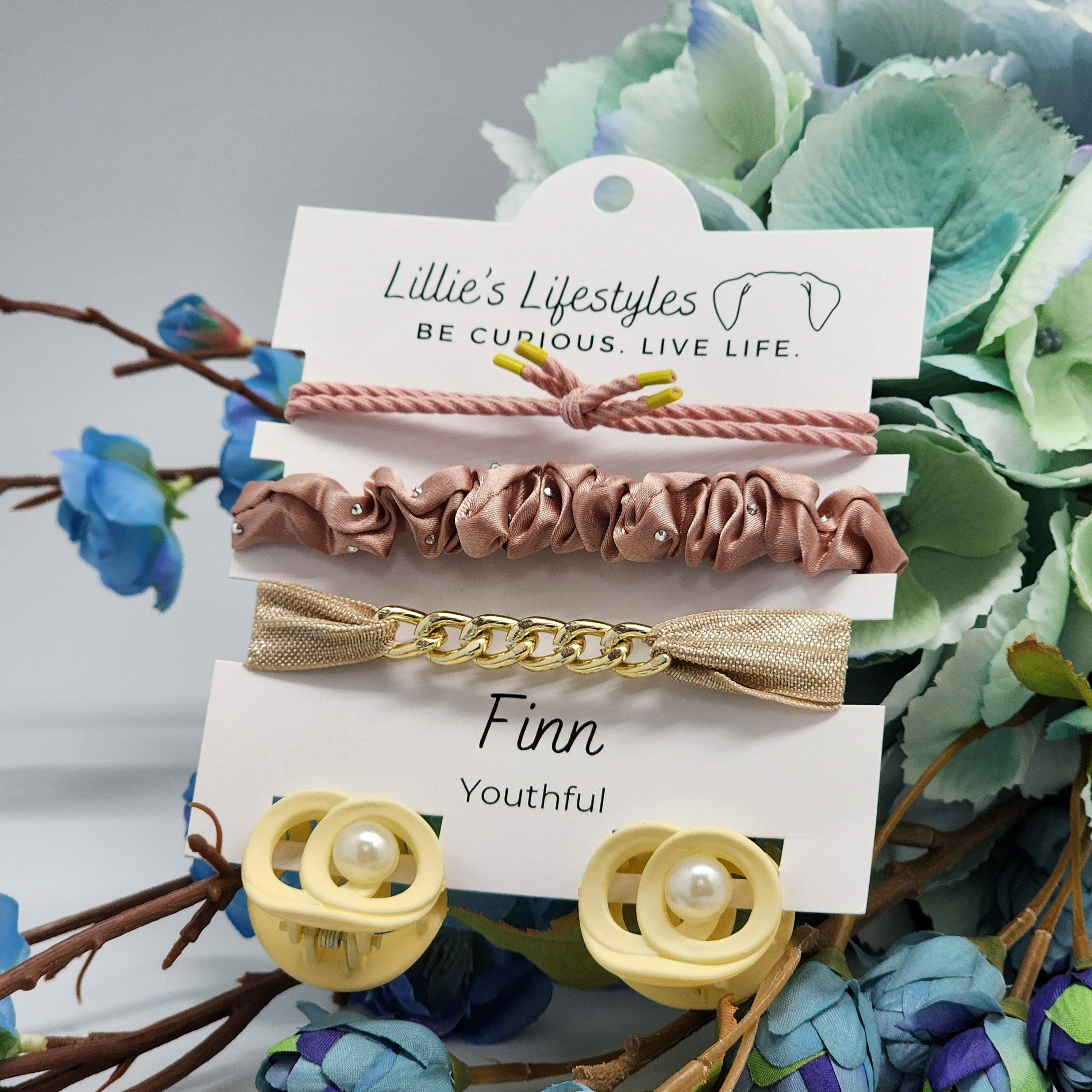 New from Lillie's Lifestyles, a set of hair clips and holders in neutral shades that will coordinate with everything! Lillie's Lifestyles hair tie bracelets can be used as a bracelet or hair band. An assortment of youthful hair ties in green and yellow shades