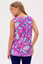 Our colorful tank features an a-line bodice with a split neckline and mandarin collar. With an easy, flowy, and relaxed fit, this tank will keep you cool for the warmer season! Not to mention it's also non-sheer, stretchy, and wrinkle-free.