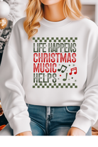 Turn up the holiday cheer with our Christmas Music Helps Sweatshirt! This playful and cozy sweatshirt celebrates the magic of festive tunes, perfect for those who know that nothing brightens the season like their favorite holiday songs. Stay warm and jolly as you sing along or relax in style this winter!